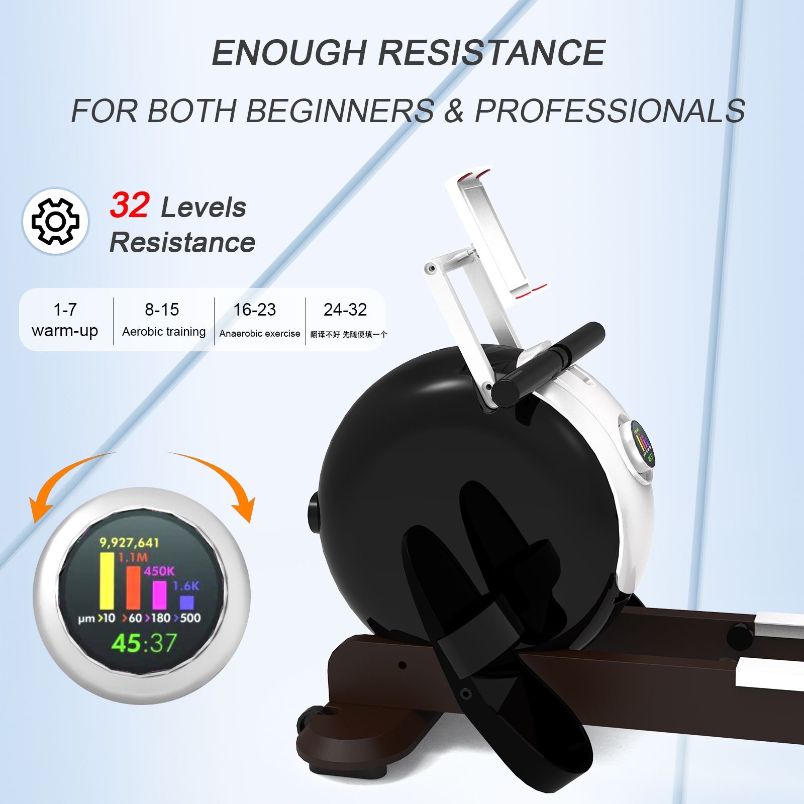 32 Adjustable Resistance: Effortlessly tailor your rowing intensity with 32-level magnetic resistance, accommodating all fitness levels for a personalized and impactful workout.