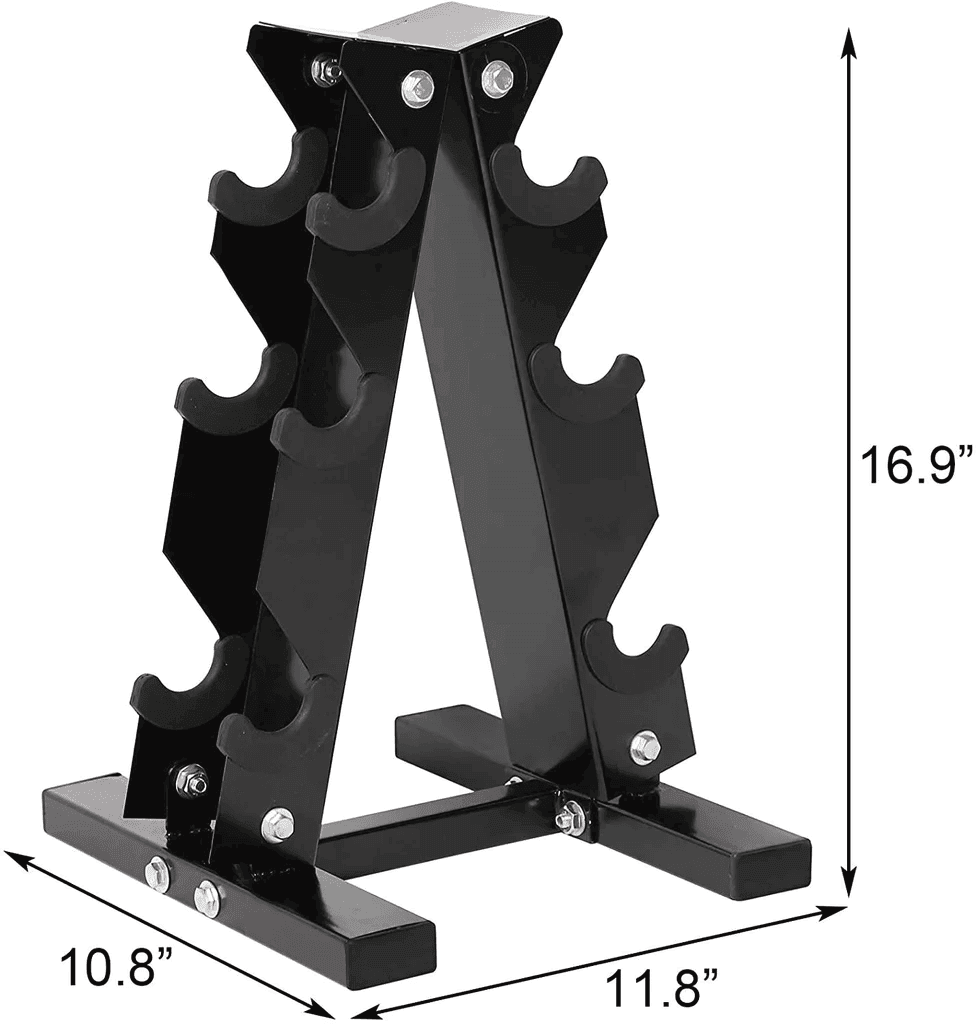 A-Frame Dumbbell Rack Stand Compact 3 Tier Free Weight Steel Dumbbell Storage Bracket for Home Gym (Black)